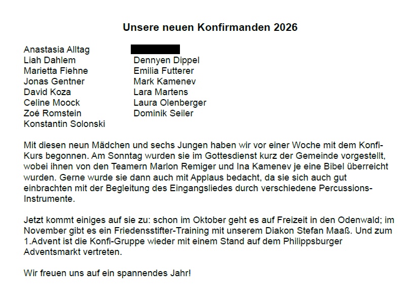 Willkommen bei der Evangelischen Kirchengemeinde Philippsburg